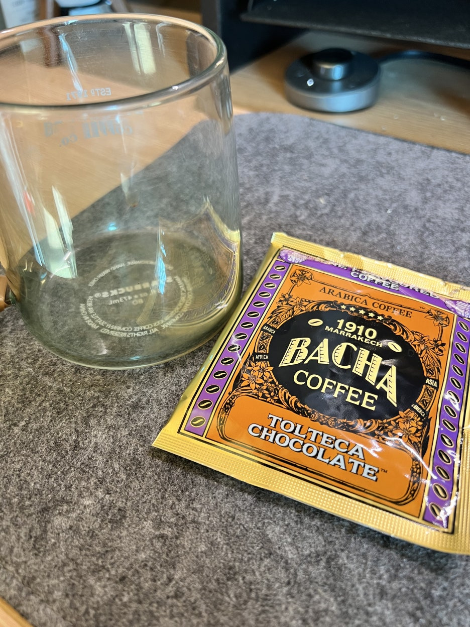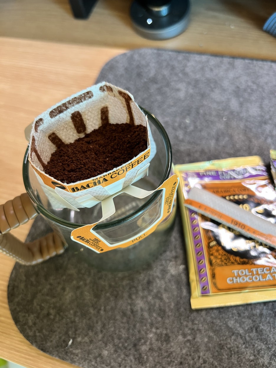 포장을 열고 드립백을 걸었는데 초콜릿/코코아 향이 엄청납니다!