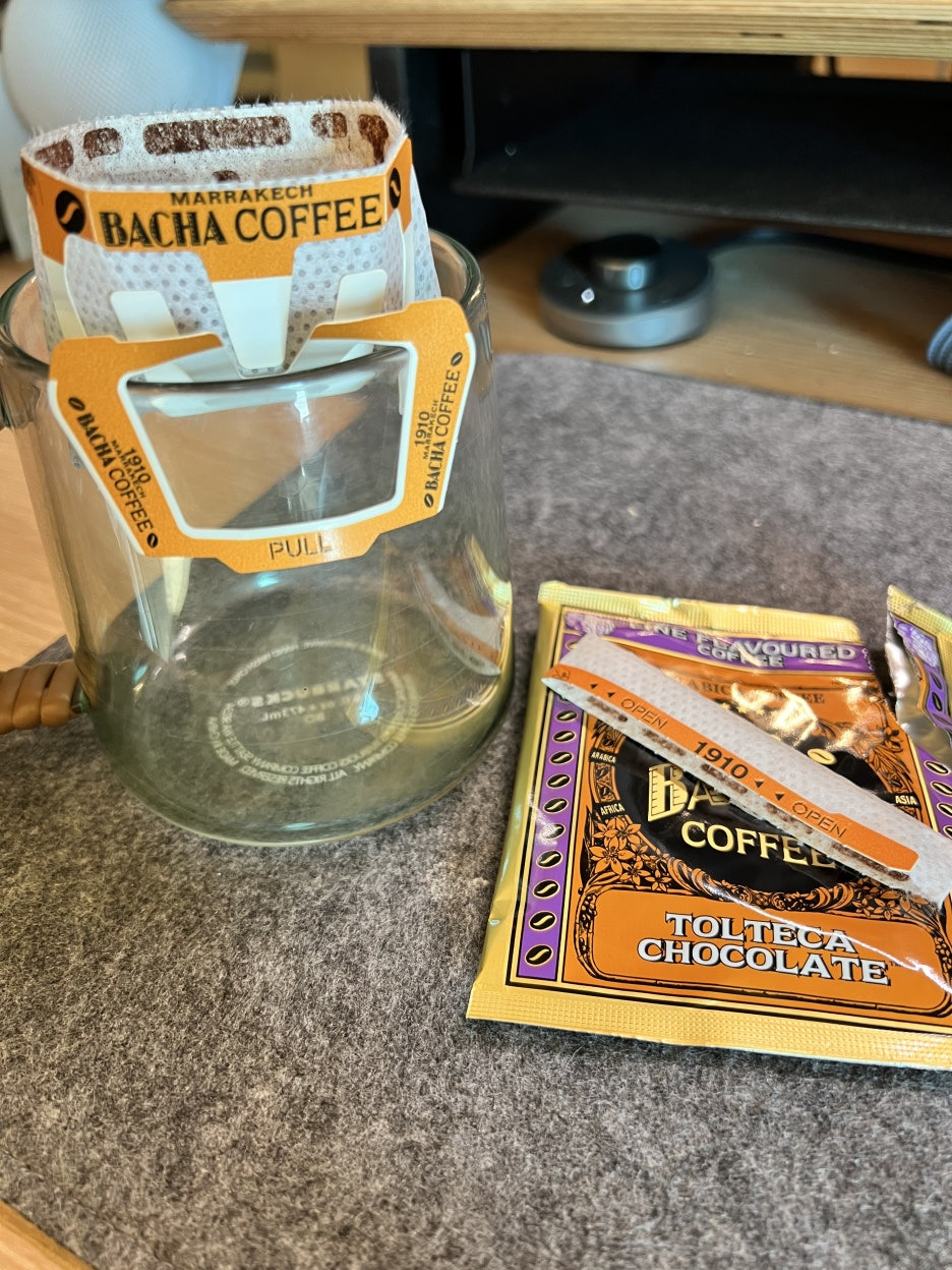 포장을 열고 드립백을 걸었는데 초콜릿/코코아 향이 엄청납니다!